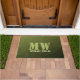 Army green olive geometric mesh pattern Monogram Doormat
