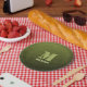 Army green olive geometric mesh pattern Monogram Paper Plate