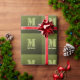 Army green olive geometric mesh pattern Monogram Wrapping Paper
