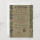 Jungle colour camouflage print with barbed wire detail and military labels and a ghost print target birthday invitation card design.