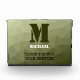 Monogram Personalize with your custom initial and name. Army green gradient geometric mesh pattern triangles ombre.