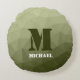 Army light green geometric mesh pattern Monogram Round Cushion