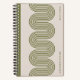 Created to coordinate with the "Lombard" art and stationery collection, this spiral-bound notebook was inspired by San Francisco's Lombard Street, which is known as the "Crookedest Street in the World." The notebook features 7 green-colored lines arranged in a winding pattern, and placed over a beige background. There is space for the customer's name on the bottom-right side, and the phrase "Daily Notes" appears in the top-right corner. This text can be customized or removed altogether. The back of the notebook features a coordinating wavy line pattern. The design is minimalistic, yet bold, and would be a perfect gift for men and women alike.