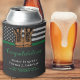Thin Green Line Military Retirement Party can cooler. Celebrate years of dedicated service, your military retirement and host friends and family to your military party with this rustic Thin Green Line Flag with Leather Army Boots Military Retirement can cooler. USA American flag design in Police Flag colours, worn black green white on faux black leather. This military retirement collection is also perfect for military graduation, soldier going away part, deployments and homecoming, change venue in personalisation. See our collection for matching military retirement invitations, gifts, military retirement party favours, and supplies. COPYRIGHT © 2021 Judy Burrows, Black Dog Art - All Rights Reserved. Army Military Retirement Leather Boots Green Line Can Cooler