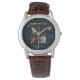 The watch looks really great! Very sharp and well done. The leather band is really nice, though for a man's watch I think it should be longer. Unfortunately, it isn't big enough for my husband's wrist but I will get a replacement because he is very excited to wear it!