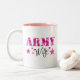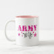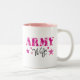 This design features pink camouflage ARMY stencil text, with a girly black font that says "Wife" with lots of pink stars around. Customise this design to make it your very own!