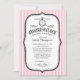 Around the clock bridal shower invitations with a victorian vintage pink, black and white stripe design. Customise the wording with your shower information. Preview exactly what the finished invitation will look like on screen before you order.