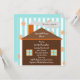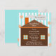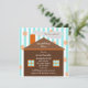 This cute around the house bridal shower invitation features a cute brown house with orange trim with a blue stripe floral background. The unique feature of this invitation is that you are able to put the invitation details inside the house. A great invitation idea for an around the house themed bridal shower! Copyright henishouseofpaper