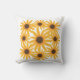 Painting of a yellow sunflower is repeated in various sizes and positions on the front of this pillow, and is shown as a single flower on the reverse side. The background colour of white can be customised.