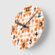 This wall clock has a mid-century modern design of arrows in two shades of orange.