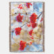 Clusters of red arrowwood berries or squashberries, or high cranberries also known as viburnum opulus against blue sky and brown foliage on a sunny autumnal day. Gifts and prints for fun and good mood