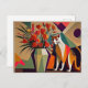 Cubism art style of a cat with a vase full of flowers, AI-Generate.