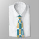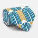 This necktie has an art deco design of arches and upside-down Ys repeating across the design in turquoise and yellow on a field of white. Want different colours? Message me.
