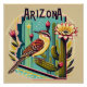 Art Deco Arizona State Bird and Flower Design Poster