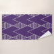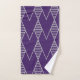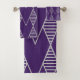This towel set has an art deco design of diamonds, some with horizontal lines, in silver on a field of blue.