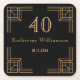Art Deco Birthday Black Gold Roaring 20's Square Paper Coaster