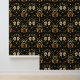 Art Deco Black And Gold Floral Beetle Pattern Wallpaper