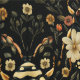 Vintage Black And Gold Art Deco Beetle Wallpaper | Elegant Floral Design. This vintage black and gold art deco beetle wallpaper is inspired by the refined designs of the 1920s. Featuring a striking golden beetle decorated with daisies, Tudor roses, and ornate wings, this pattern brings a sophisticated touch to interiors. The deep black background enhances the intricate floral details, creating a bold and timeless aesthetic.