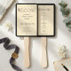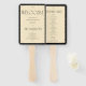 Celebrate your special day with this elegant Art Deco inspired wedding ceremony program fan. Featuring a sophisticated black and cream color palette and a classic Art Deco font, this fan is designed to impress your guests while keeping them cool. The 'Welcome' title is prominently displayed, followed by the names of the happy couple and the date and location of your wedding. Below, the 'The Ceremony' section details the order of events, including prelude, seating of parents, processional, entrance of the bride, readings, exchange of vows, and recessional. This beautiful fan serves as both a practical favor and a cherished keepsake for your guests, adding a touch of vintage glamour to your wedding.