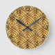 Art Deco black & gold broad leaf scale pine cone Round Clock
