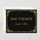 Gold and black wedding Save the Date postcards in Great Gatsby Art Deco style with customisable text