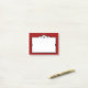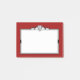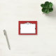 This Post-it Post-it® Note pad features a dark brick red background and a white box with a black art deco border.
