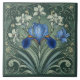 Art Deco Blue Iris Bloom Floral Motifs Botanical Tile