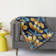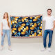 Art Deco blue orange flowers Throw Blanket