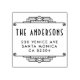 This return address stamp features a bold geometric border above and below your family name and contact details.