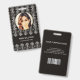 Modern white art deco geometric pattern on black background. Additional information can be added to the backside of this business ID badge