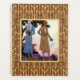 Art Deco Canyon Shutterbugs from vintage 20's era are illustrated within a canyon backdrop. Gold coloured Art Deco pattern surrounds the vintage picture of two camera enthusiasts. Earthy golden brown colours the background.