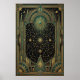 Gaze into the infinite with the "Aura Celestial" Star Map poster. This masterfully detailed artwork features a brilliant central starburst connected to a complex web of hand-drawn constellations and planetary orbits. The celestial map is encased within a grand, symmetrical Art Deco frame, featuring towering spires, arched portals, and gem-like accents in signature teal and metallic gold.