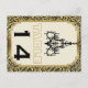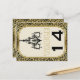 Art Deco chandelier black, gold table number postcard featuring a black chandelier, a border in Art Deco style and black and golden floral damask on beige/ecru. This elegant design is a modern approach to a vintage/retro style that resembles that of the Roaring 20’s and The Great Gatsby. It is part of a wedding set and is completely customisable.