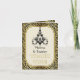 Art Deco chandelier black, gold Thank You photo note card featuring a black chandelier, a border in Art Deco style and black and golden floral damask on beige/ecru. Your photo is on the left inside. This elegant design is a modern approach to a vintage/retro style that resembles that of the Roaring 20’s and The Great Gatsby. It is part of a wedding set and is completely customisable.