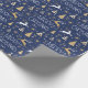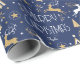 Art Deco Christmas Reindeer Custom Name Dark Blue Wrapping Paper