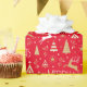Make your holiday gifts extra special with custom name wrapping paper. This elegant design features vintage-style illustrations inspired by the opulence of the Art Deco era. It includes leaping reindeer, festive Christmas trees and stars, paired with stylish retro typography. Personalise the template with the recipient's name, or your family surname. A unique design that combines timeless style with a modern twist! This seamless pattern gift wrap is available with a matte or glossy finish. Printed colours: red, white, and a gold colour.