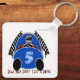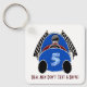 Art Deco Comic Style Blue Race Car (Personalised) Key Ring