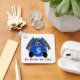 This keychain features IconDoIt's original digital painting of a comic-style bright blue, 1920's Bugatti-inspired race car & driver w/ crossed chequered flags flapping behind. Caption defaults to "Real Men Don't Text and Drive". Keep, Change or Clear.