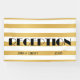 Gold and white stripe background with RECEPTION in Art Deco style black font. Customise with couple's name and date