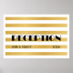 Gold and white stripe background with RECEPTION in Art Deco style font. Customize with couple's name and date.