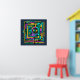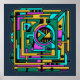 This poster features the design Mavericamera, This striking design features a bold fusion of art deco elegance and cyberpunk vibrancy, showcasing intricate geometric patterns in neon cyan, metallic gold, and vivid fuchsia. Perfect for modern art enthusiasts and fans of retro-futuristic aesthetics, this piece brings dynamic energy and sophistication to any setting.