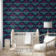 Art Deco Dark Purple and Teal Fans Wallpaper