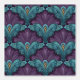 This Art Deco pattern features dramatic, layered fan shapes in deep purples and rich teals, creating a bold and expressive vintage-inspired design. Intricate linework, stylized feather-like forms, and ornamental jewel-toned accents give it a lavish, theatrical feel reminiscent of classic 1920s glamour. The repeating motif feels lush and dimensional.