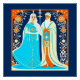 Art Deco style Ded Moroz or Grandfather Frost and Snegurochka, the Snow Maiden.