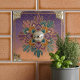Step into a whimsical desert dreamscape with this Art Deco-inspired ceramic tile. Featuring a vibrant mandala design adorned with playful cacti and a shimmering disco ball, this piece brings a unique blend of retro glamour and desert charm to any space. The intricate patterns and rich jewel tones of purple, teal, and orange, outlined in elegant gold, create a captivating visual experience. Each tile is meticulously crafted to add a touch of artistic flair and a hint of playful energy to your home décor, making it a perfect statement piece.
