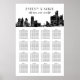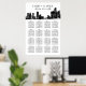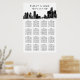 A striking black and white wedding seating chart featuring the iconic Detroit city skyline. Art deco-inspired typography showcases your names in bold uppercase lettering, with decorative accents framing the wedding date. The clean table layout below guides guests to their seats with style. Fully customizable for your Motor City celebration.