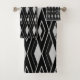 This towel set has an art deco design of grey diamond shapes on a field of black.