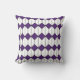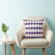 This throw pillow has an art deco design of white hexagons with a black line down the middle and pink diamonds.