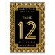 A classic, vintage style wedding table number card with a 1920s "The Great Gatsby" theme in black and yellow gold tones. A repeating Art Deco period diamond pattern in golden yellow tones forms the background of the card. The table number is enclosed within an overlapping triple frame. Shading has been utilised around the frame in order to have it stand out from the background pattern.