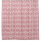 This shower curtain has an art deco design of overlapping diamonds in pink on a field of white.